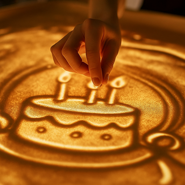 Организация мероприятия с элементами песочной анимация — это возможность сделать ваш праздник по-настоящему уникальным. Особенно актуальна песочная анимация на детский праздник— ведь дети и взрослые с одинаковым восторгом наблюдают, как из струек песка рождаются сказочные картины. Наши талантливые мастера работают над каждым проектом с душой и вниманием к деталям, создавая персональные сказки и визуальные история.